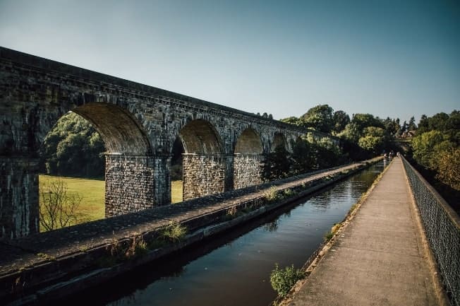 A spectacular walk around the estate surrounding Chirk Castle, with an option to visit the castle from a stretch of the Offa’s Dyke Path. The end of the route will reward you with remarkable views of both Chirk viaduct and aqueduct – first open in 1848, the viaduct has ten impressive arches, each spanning 14m wide, and rising 30m above the river.