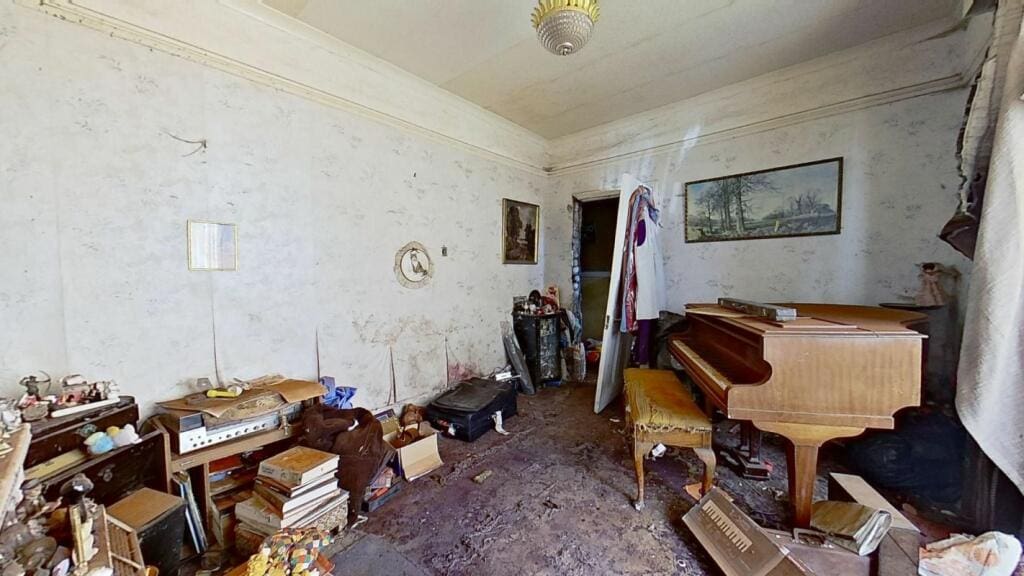 “Any buyer will have to look beyond what is currently before their eyes inside the house which is quite challenging, to see what can be achieved, with some imagination, from this property . The house requires full modernisation and improvement but has UPVC double glazing. If retained, the many original features that come with the house would enhance any future improvements.