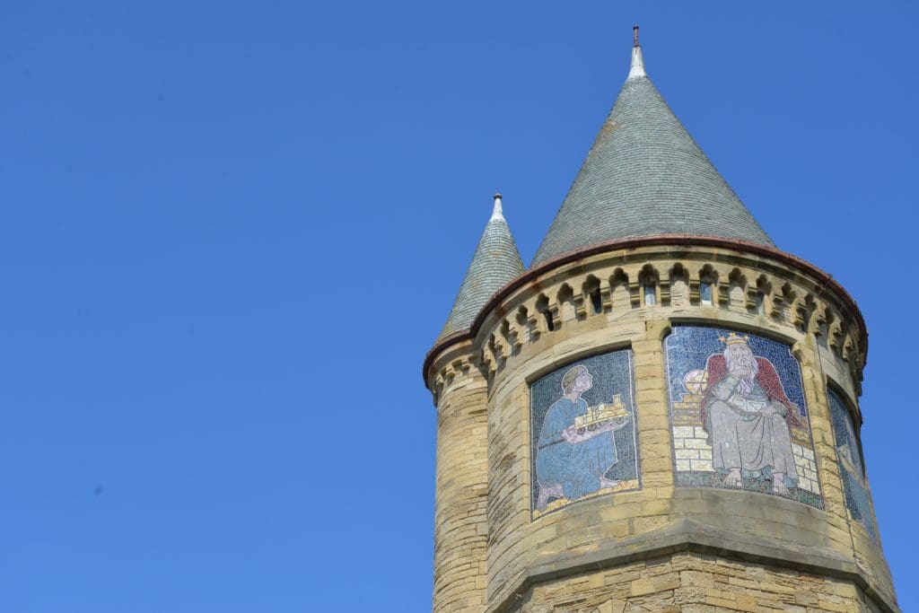 Added to these are the distinctive green slates on the turrets of South Seddon, the section of the Old College closest to the castle.