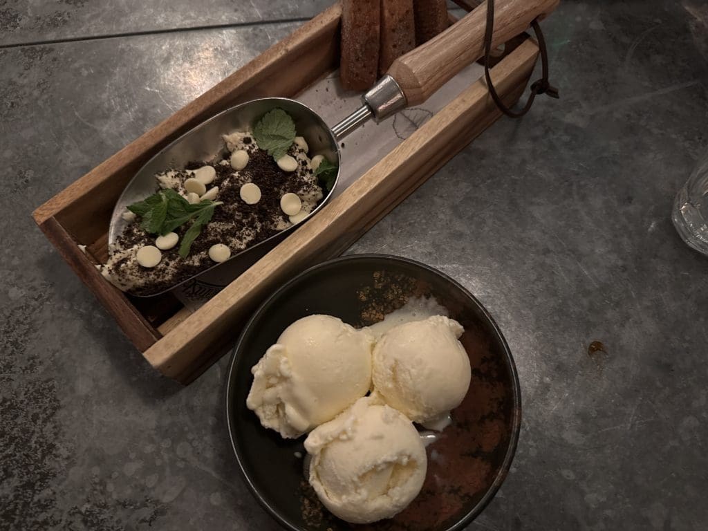 Even with the very generous portions we managed to keep some room for dessert. We opted for the white chocolate and peanut mousse (£6.95) and the ice cream coupe (£4.95), because who doesn’t love a good ice cream?
