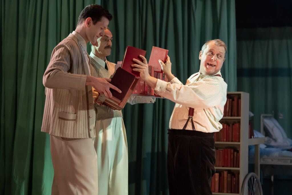 Nye Bevan has been quoted to say ‘I had to stuff the doctor’s mouths with gold, to get them to accept the NHS’, something which does surface in this production. I’m not sure this paints a particular great picture of doctors of the time, as you will see.