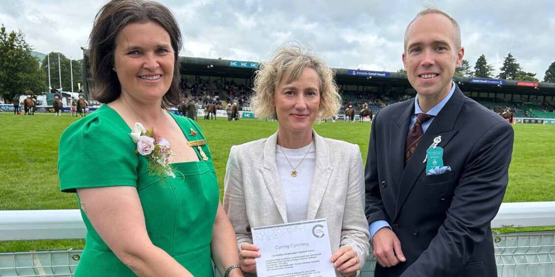 As the Royal Welsh Show was underway in Llanelwedd Monday 22nd, chief executive Aled Rhys Jones said he was delighted to accept Cynnig Cymraeg recognition on behalf of the Royal Welsh Agricultural Society (RWAS).