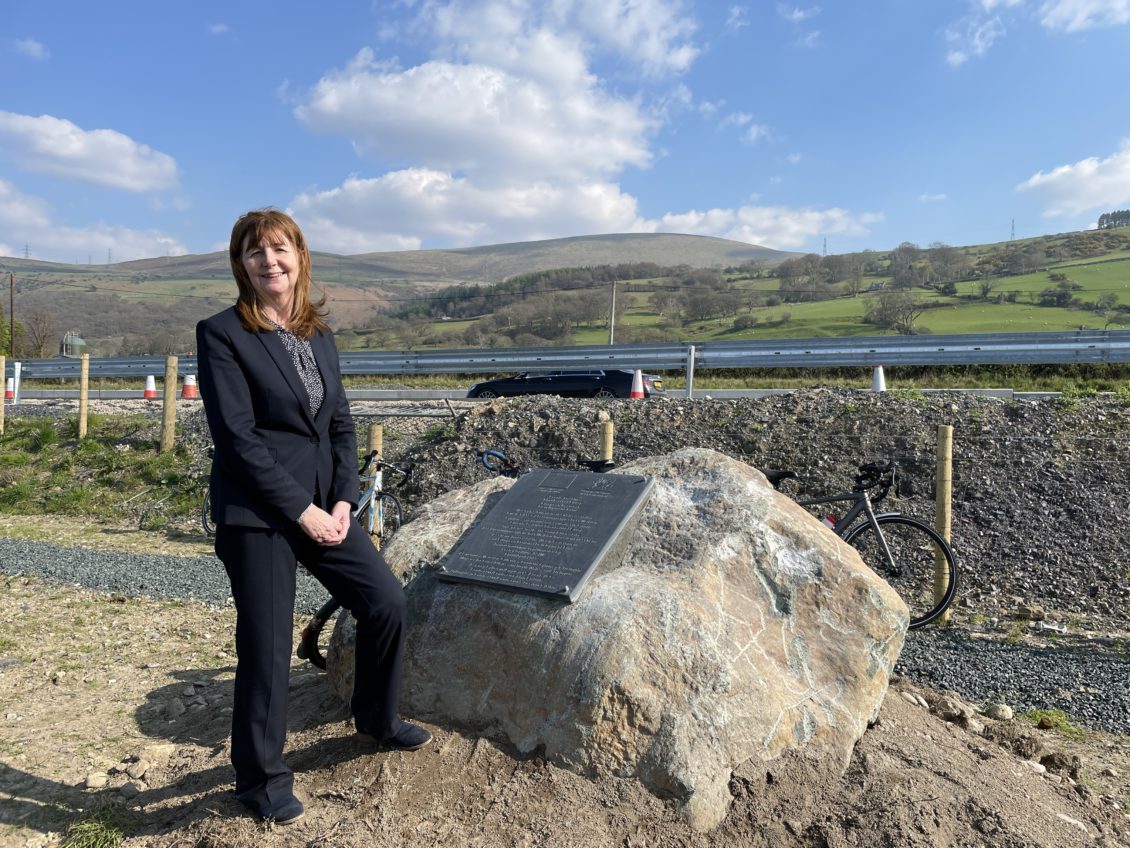 The completion of the safety and improvement work on the Aber Tai’r Meibion section of the A55, which includes a new active travel route, has been officially marked by the Minister for North Wales Lesley Griffiths.