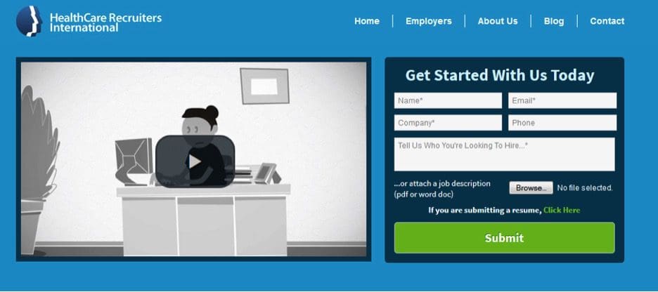 As you can see here, this example of a video call to action from Healthcare Recruiters International provides a signup call to action at the side of their video content, in order to accompany the information received in the content. This is a clever way to use your video strategy to guide the consumer to the next steps on your site.