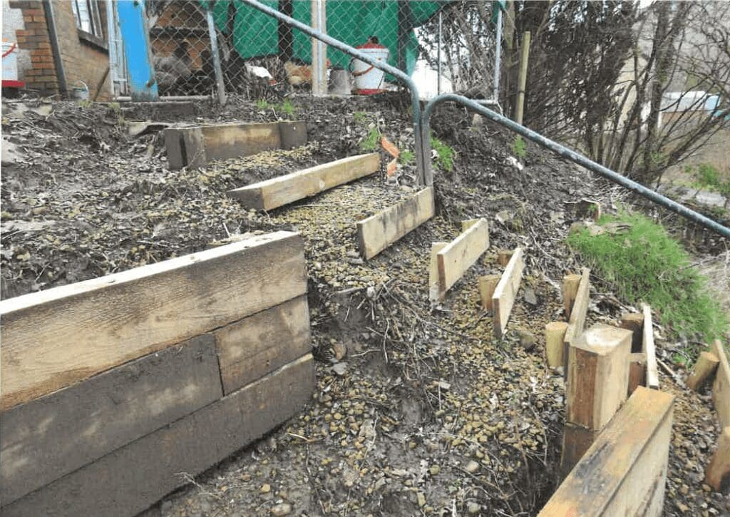 Due to the inclement weather and his disabilities the Complainant was unable to inspect the work for some time. When he did, he found it was very slippery and dangerous, he could see that the steps were far too steep and dangerous. He stated that the steps looked poorly constructed and the wood seemed flimsy and split and uneven.