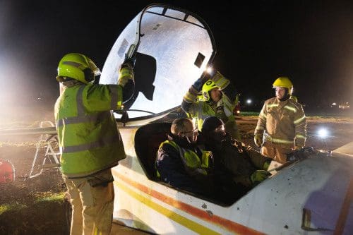 The exercise involved two ‘casualties’ in the light aircraft and three in the vehicle.