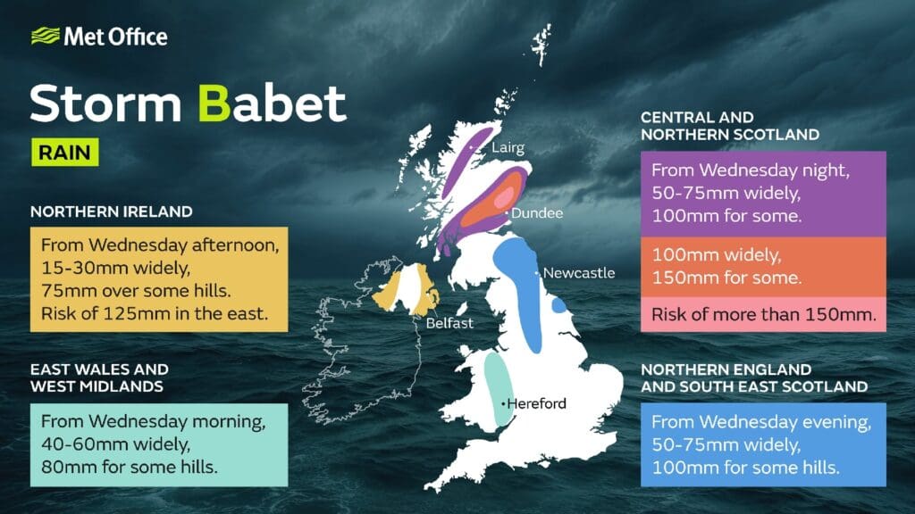 Met Office Deputy Chief Meteorologist Tony Wardle said: “Storm Babet will bring disruption for parts of the UK in the coming days, with heavy rain and strong winds likely for many.