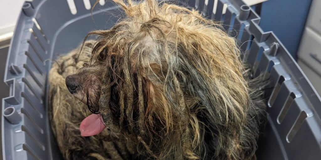 RSPCA Cymru has launched an appeal for information after a Yorkshire Terrier – with a matted coat – was found in Cwmavon.