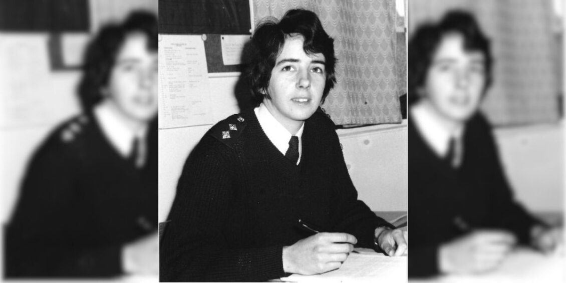 Marg was born in 1951 in Pembroke Dock, Pembrokeshire, to Lynda and Tom (T. W.) Davies. Her father owned shoe shops in Meyrick Street, Pembroke Dock, while Marg attended Albion Square Junior School and Pembroke Grammar School. From there she went on to Art College in Bromley, Kent. She dropped out, frustrated by what she saw as “unwritten rules”, and returned home to Pembroke Dock. Deciding she wanted to do something more active, she was drawn to The Army, appreciating its structure: “If I was going to break rules, I might as well have them written down,” she explains.