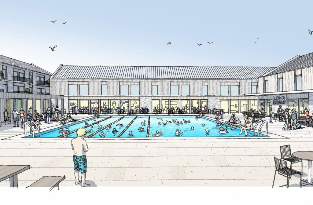 The Lido swimming pool would be located at Salt Lake opposite the marina where it would incorporate a gym, a restaurant, a café and other related facilities. The funfair rides would form part of a new site located at the opposite end of Salt Lake, close to the Aldi food store, which would offer new public events space.