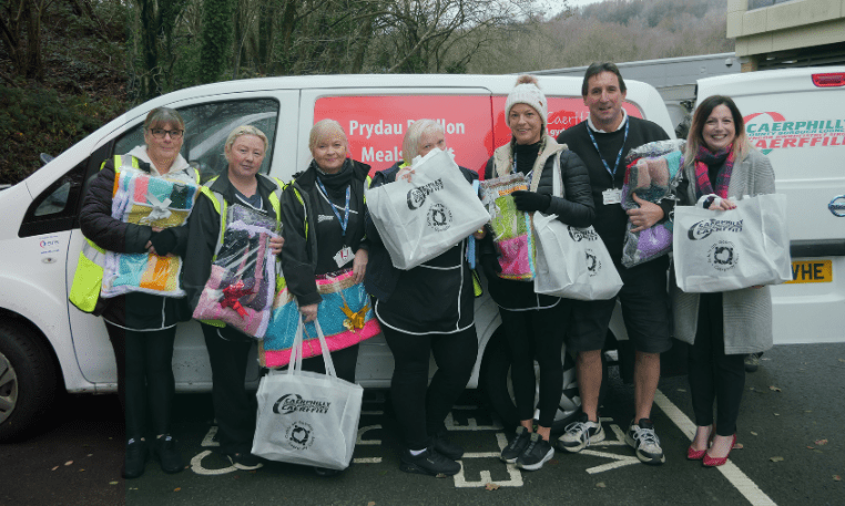 Meals Direct staff have teamed up with Caerphilly Cares to deliver a supply of beautiful crochet blankets, handmade and donated by volunteers from the Caerphilly Miners Centre.