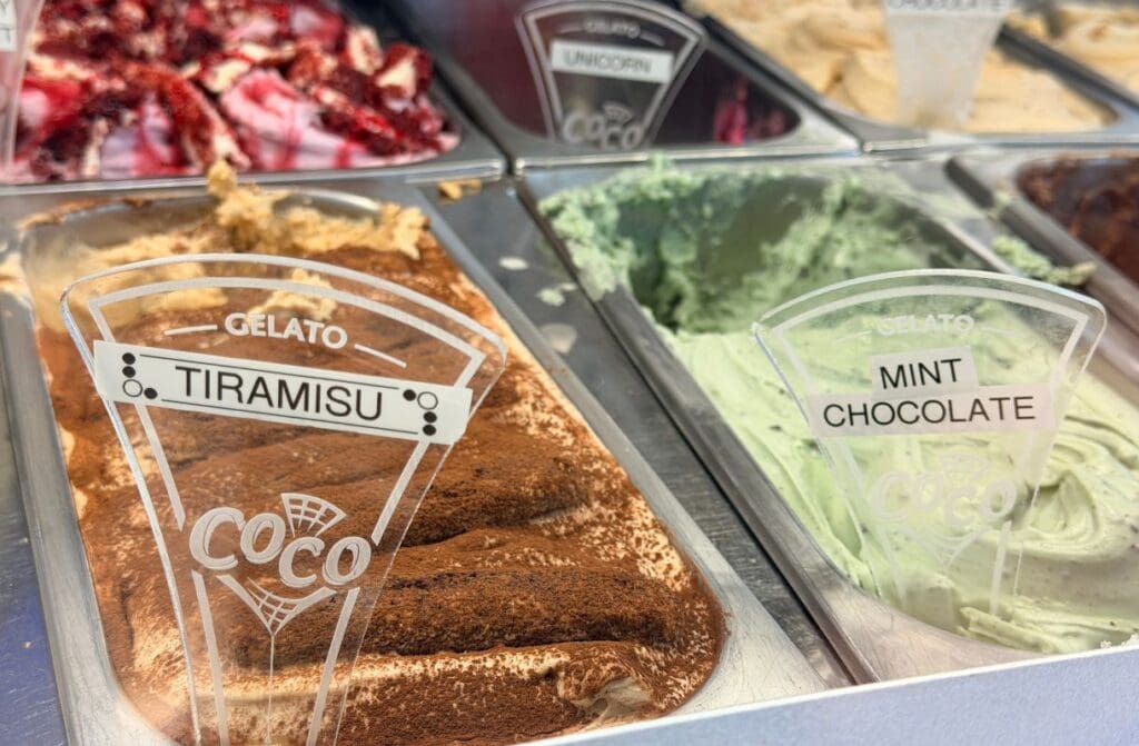 Last time, the waffles were buried under melting gelato. Rookie error. This year we asked for the waffles to be cut into quarters and placed around the edge. The thinking was simple. Keep structure. Avoid soggy chaos. Maintain morale.