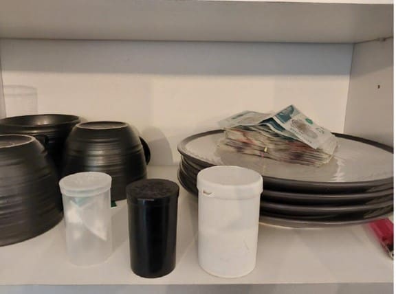They carried out a search warrant under the misuse of drugs act and found 13.8 grammes of cocaine in street deal bags and £2480 in cash, stashed in a kitchen cupboard.