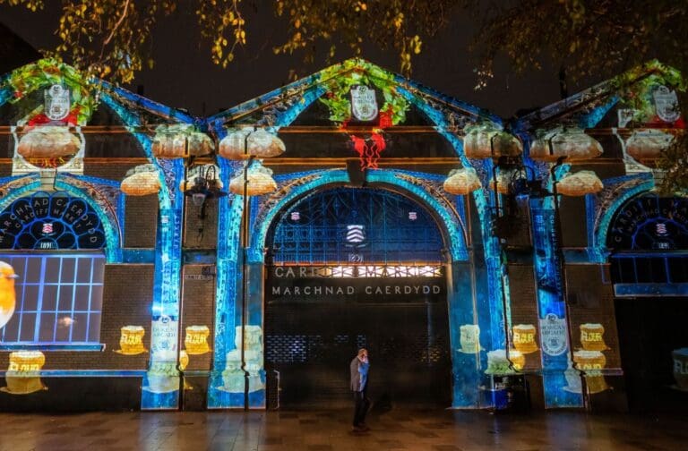 Carolyn Brownell, Executive Director at FOR Cardiff, said, “Cardiff at Christmas is a truly magical place, and this year’s light projections bring that spirit to life in a way that feels both fresh and rooted in our city’s unique character. From the timeless words of Dylan Thomas lighting up Central Station, to our brand-new projection site outside Cardiff Market, these installations are a celebration of creativity, community and connection.