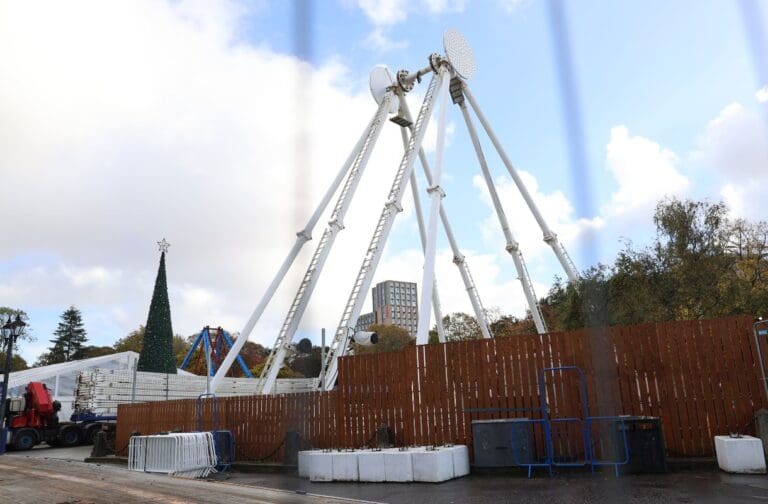 The familiar skyline of Cardiff’s winter festivities is starting to reappear, with the Big Wheel now being put together on City Hall Lawn. Decorations are being installed across the site, and the towering Christmas tree has already been built, with teams seen testing its lights ahead of opening night.