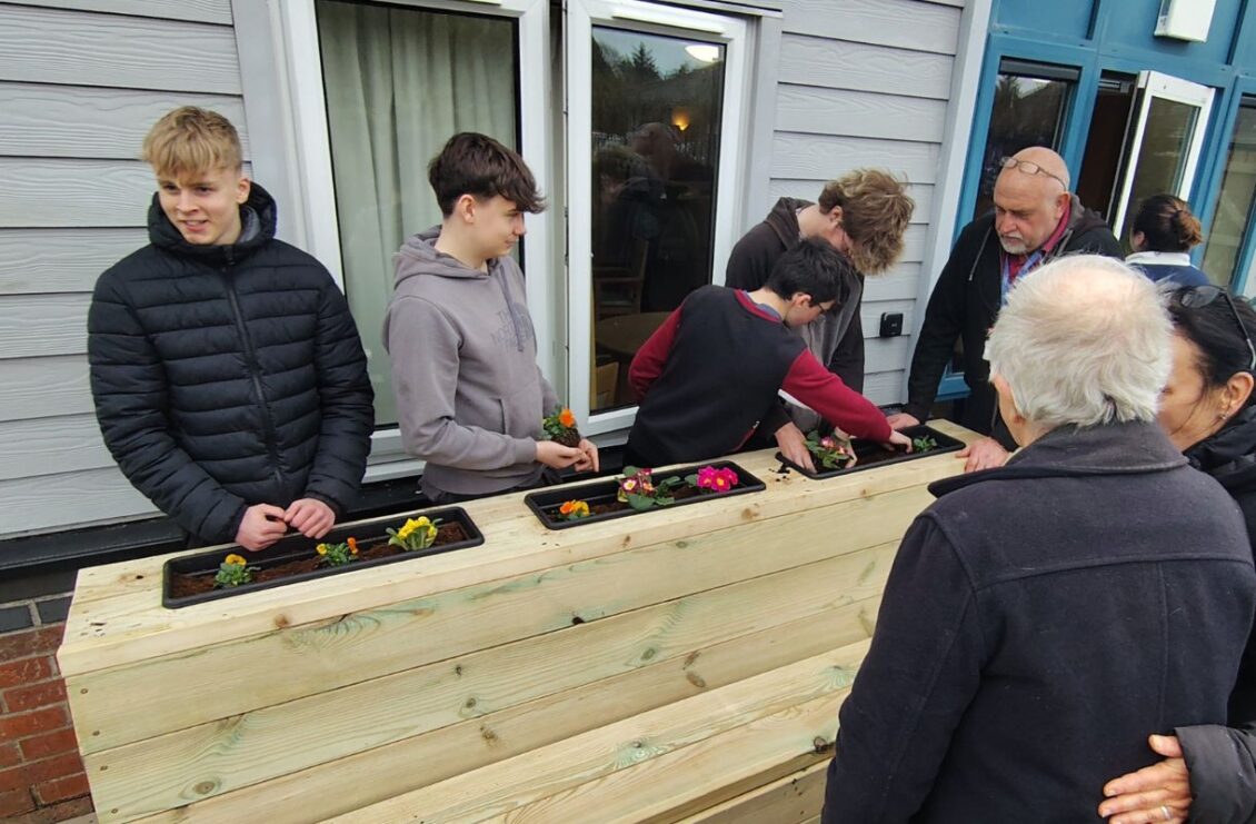 “It was great to see the local youngsters who had worked hard on their Ceredigion Training courses to build an accessible potting table and bench with planters,” said Dic Evans, a resident at Hafan y Waun. “They came to help us set them up and planted flowers with us under the supervision of their training advisor Martin and Mentor Lauren. Many plants were planted, and we look forward to seeing them grow to brighten up our summer.”