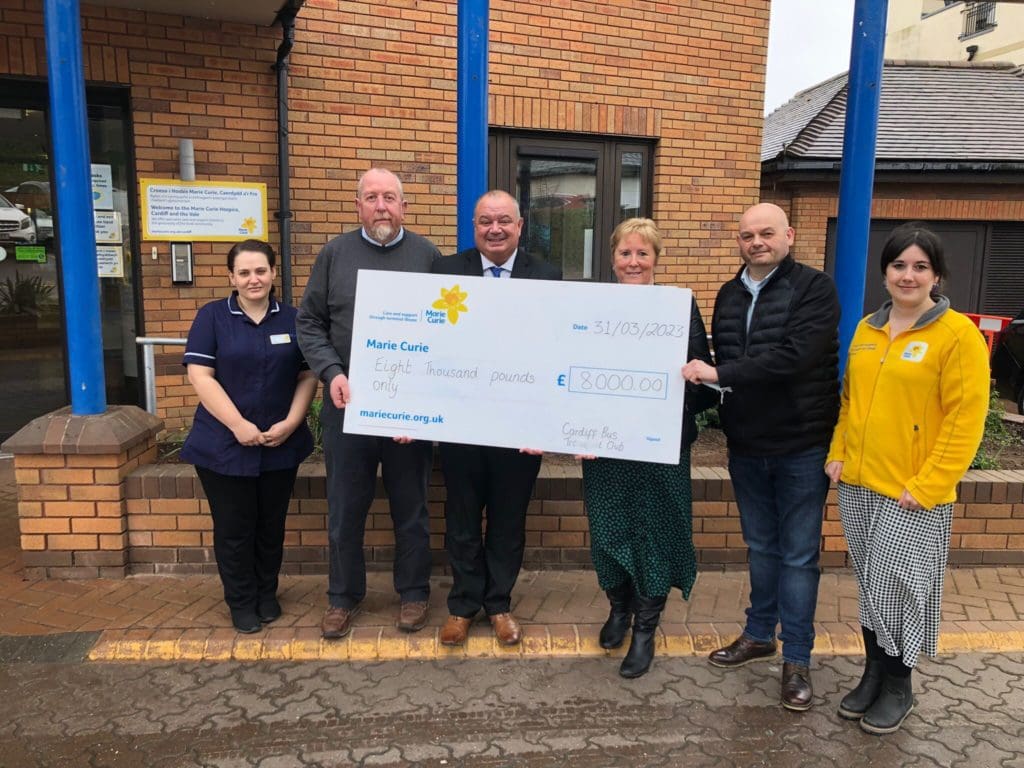 Members of a closed club and Cardiff Bus staff have donated £8000 to a leading end of life charity in memory of late colleagues.