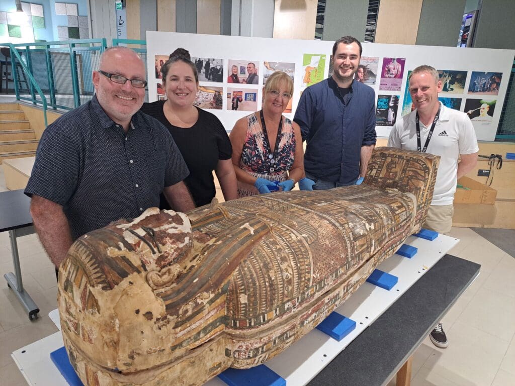 Appropriately enough, among those on hand to carefully unpack it on its arrival was museum manager Wendy Goodridge, who had originally brought the coffin to Cardiff’s School of History, Archaeology and Religion.