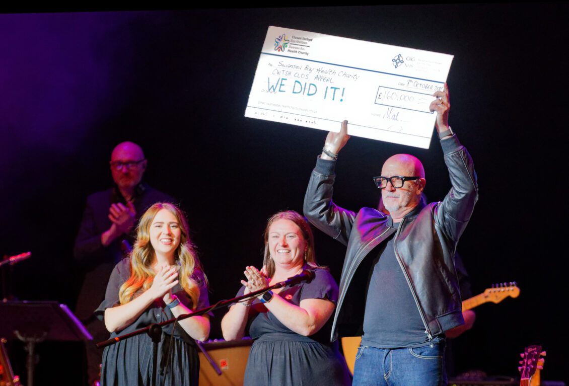 “Mal, we’re truly grateful for everything you’ve done to champion the appeal and inspire others to get involved. It felt right to finish and celebrate the Cwtsh Clos Appeal at your Homecoming show. From everyone at Swansea Bay Health Charity and Swansea Bay University Health Board, thank you.”