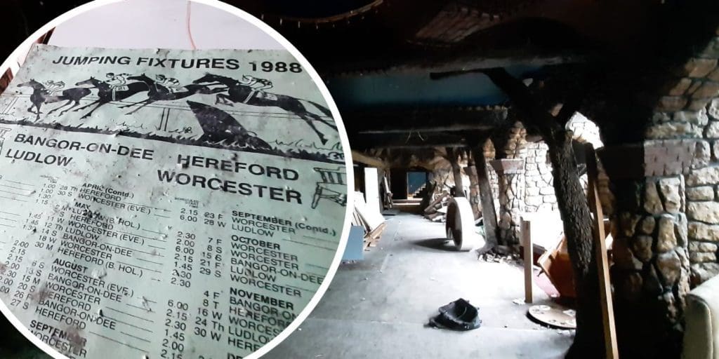 There’s a fancy, hand-painted entrance sign, cavern-like seating areas, a Corona lemonade bottle on the bar, a bottle of sweet vermouth Martini Rosso – and a poster publicising which horseracing fixtures are due at Bangor, Hereford, Ludlow and Worcester in 1988.