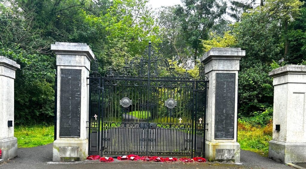 The marble gates and series of plaques which form the memorial commemorate those from the area who lost their lives in the First and Second World Wars.