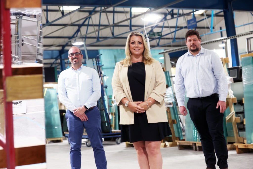 Manuel Di Campli, Development Bank of Wales; Angela Worgan, owner of Abbey Glass; Mark Halliday, Development Bank of Wales.