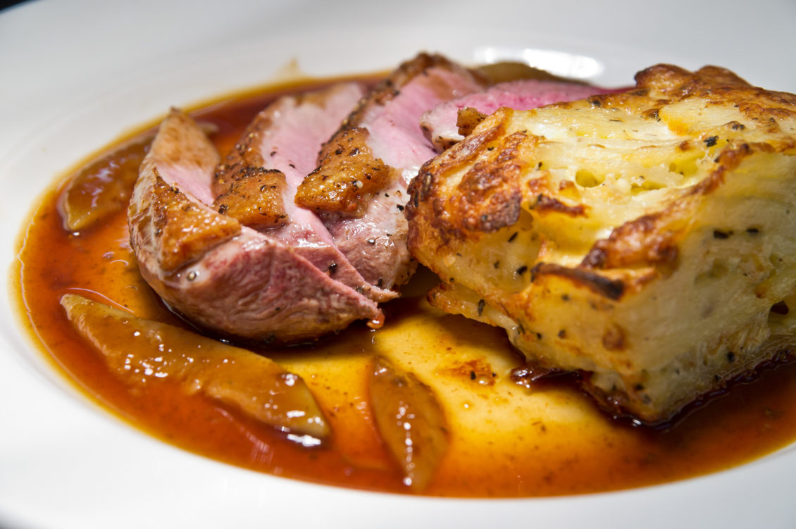 Chef Gareth has been cooking at the Wynnstay for over 20 years, and in his own words serves up “unashamedly classic” dishes. One of which is his signature dish peppered duck paired with crushed new potatoes in their skins, and crunchy green beans, served with a velvety, peppery sauce.