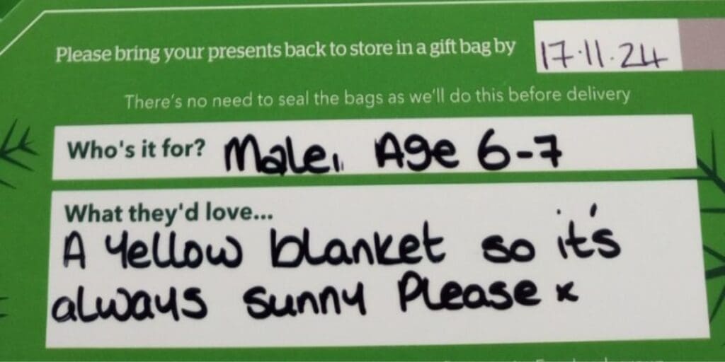 Everyday items such as a chocolate bar or tea bags for a warm cup of tea, are already in high demand for some of this year’s recipients – showing that despite the requests being small, they can still make a big difference for those who may otherwise go without.