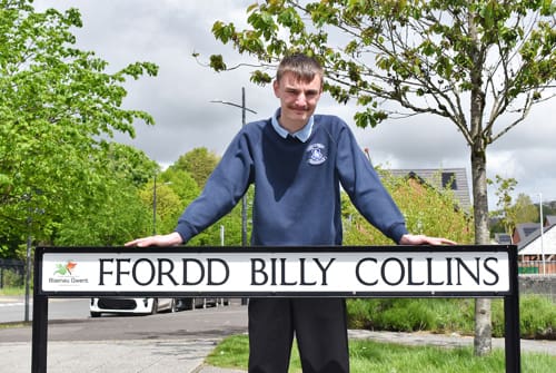 New road signs were unveiled this week to officially name ‘Billy Collins Way’ (Ffordd Billy Collins) at the rear of the General Offices in Ebbw Vale.