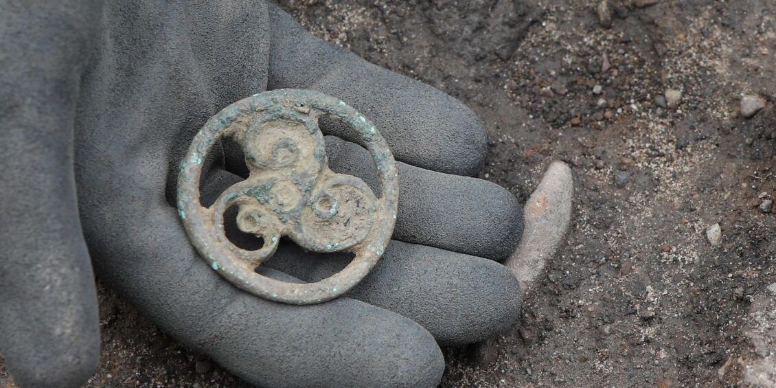 “In addition to the bridle mount, the excavation has also found a wide variety of pottery types. This suggests that those living in this settlement were wealthy and directly trading with the occupying Roman legion.