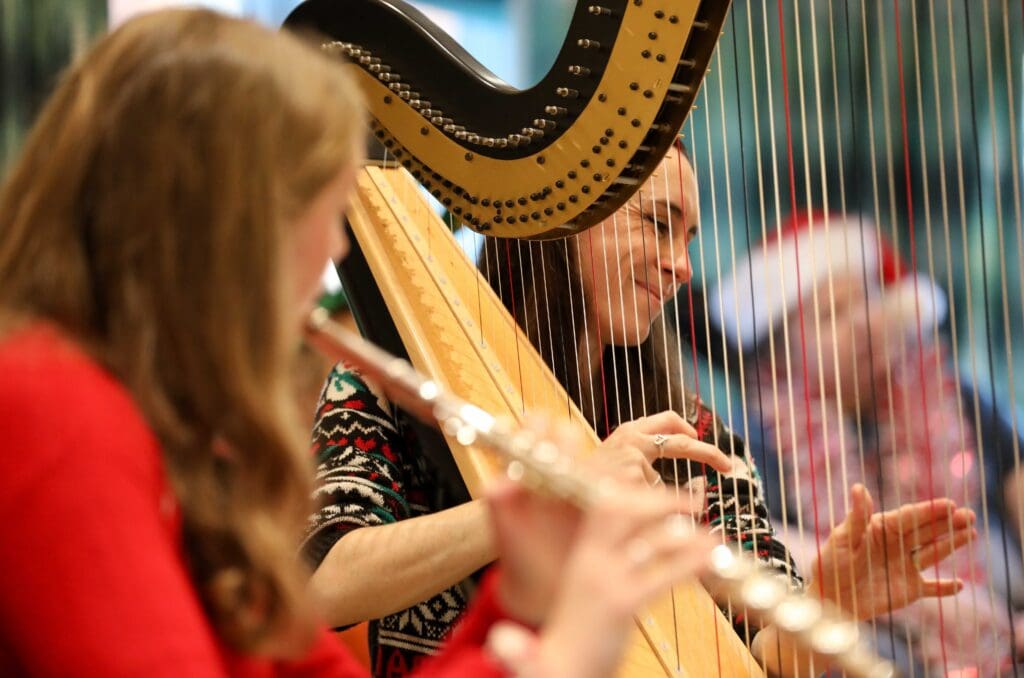 Residents at Pendine’s Penybryn care home were treated to a show-stopping performance from harpist Bethan Conway and flautist Charlotte Thomas who encouraged everyone to join in the seasonal sing-along.