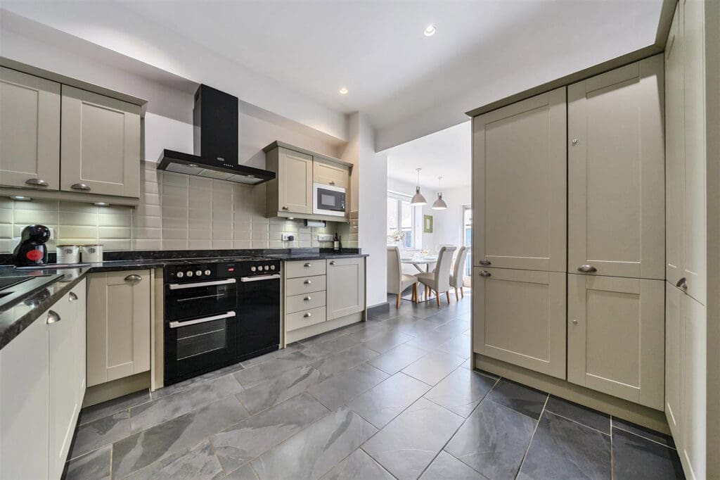 The accommodation includes a spacious lounge/diner with a feature wood-burning stove, a playroom, a high specification fitted kitchen, four, well-proportioned bedrooms and three modern bathrooms. Underfloor heating runs throughout much of the property.