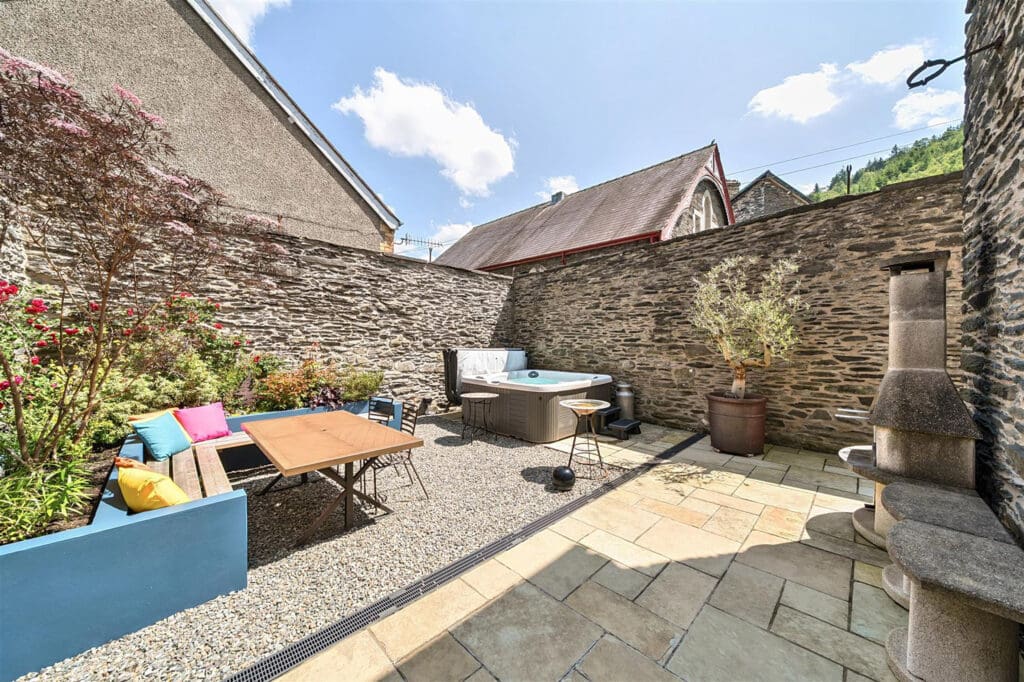 Both properties enjoy private outdoor spaces. The Old Police Station has a striking, stone-walled courtyard, originally the prisoner exercise yard which now offers a stylish alfresco retreat with a built-in corner bench, dining table, attractive planting, luxurious hot tub and stone BBQ fireplace.