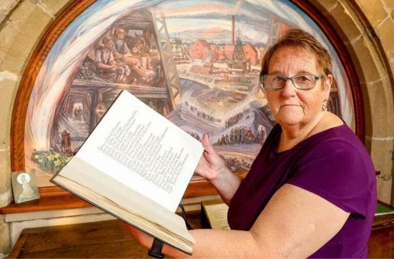 Gillian Davies with the book of remembrance listing the names of the 266 miners who lost their lives in the Gresford mining disaster in 1934. Credit: Rick Matthews