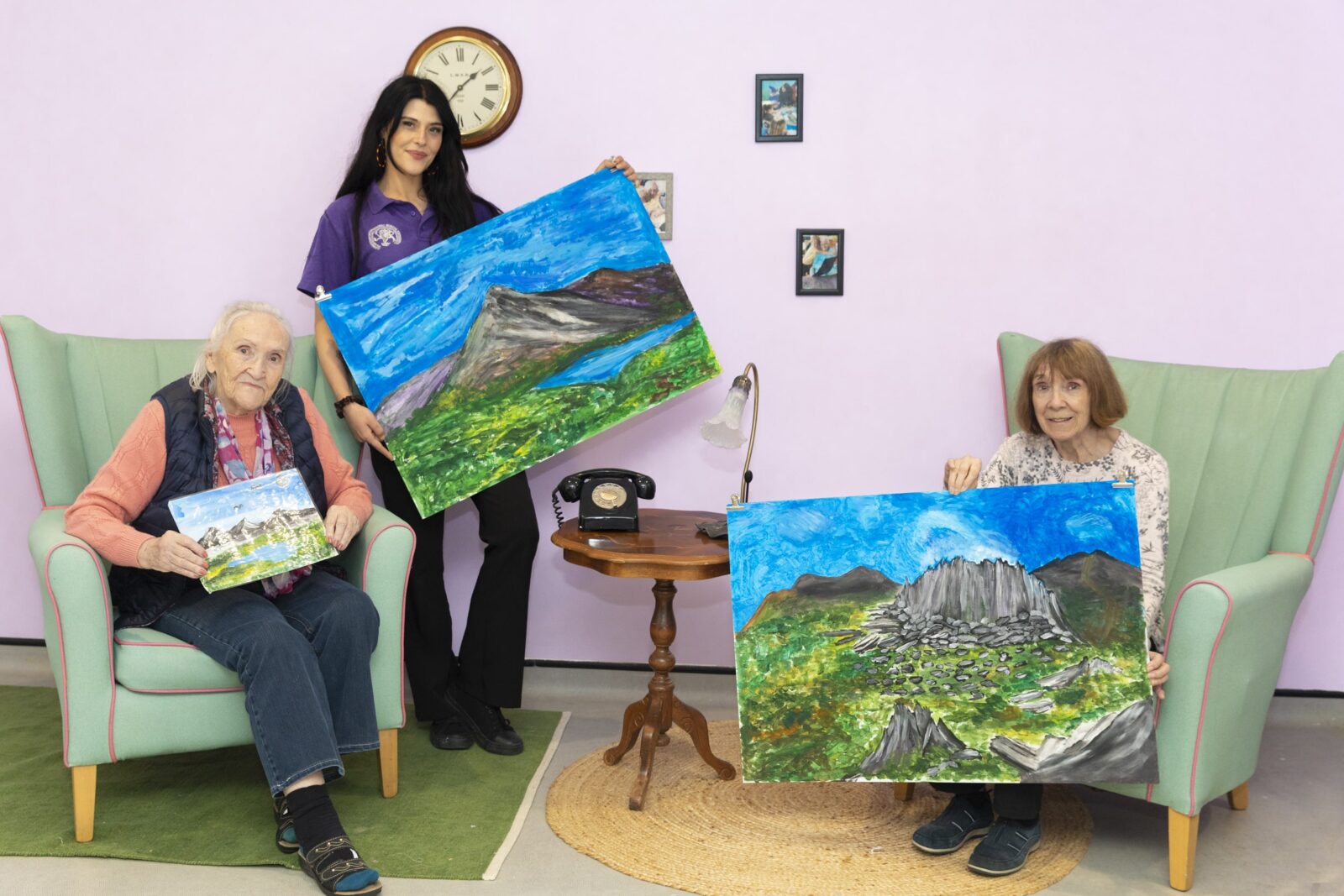 Pendine Enrichment Co-ordinator Elliw Owen led the drawing work and created artwork with the residents, inspired by the spectacular landscapes of the Eryri National Park.