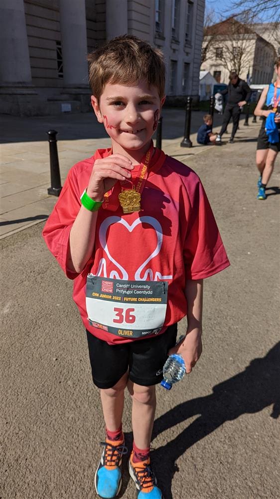 In March Ollie took part in the Junior run at Cardiff Half Marathon, and in May he joined in the Cardiff Bay Run Children’s Future Challenger 1 mile race, supported by his proud parents Kirsty and Steve, and his big brother Jack.