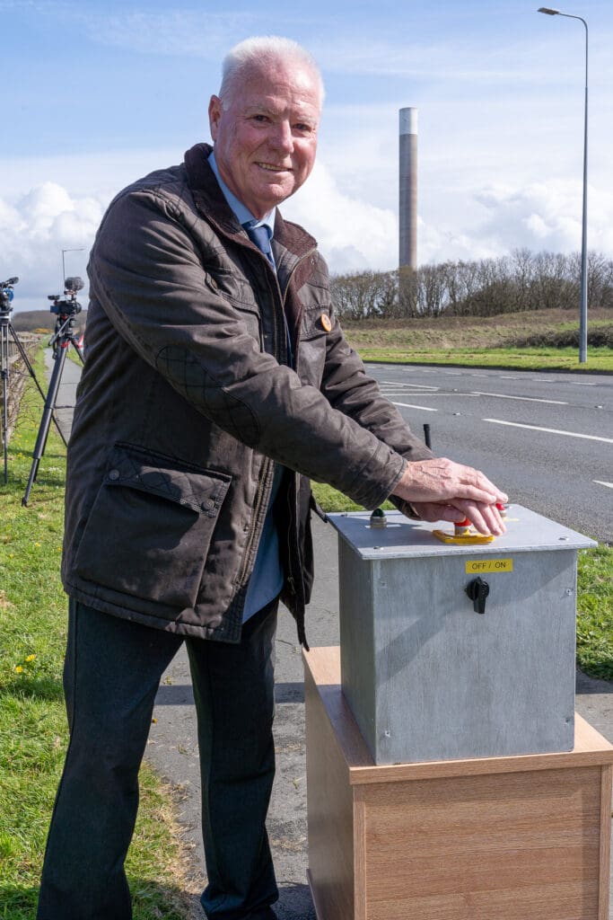 Geraint, a former North Sea commercial diver born and bred in Aberffraw had wife Lyn by his side as he pressed the button which changed the Holyhead landscape forever. He said: