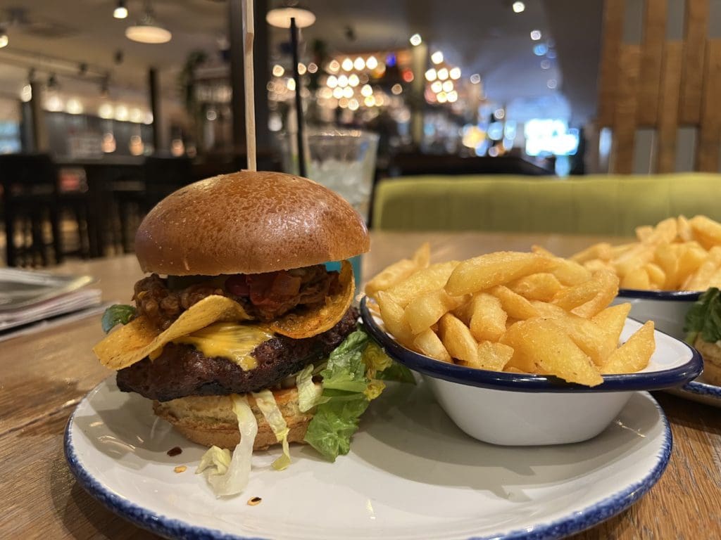 The second Revs burgers that we decided on was the Chilli Cheese (a personal favourite), which features spicy pulled chilli beef, cheese, nachos, crispy fried onions and jalapeños. There is also a vegan option available (which we didn’t try) and again, this would have cost us £11.50 without the deal and also came in a brioche bun and house fries – although you can always swap the fries for salad. However, if you are a fan of chips, which we are, I’d recommend giving these a go. They were just the right level of crispiness with a lovely flavour of sea salt seasoning, which made them very moorish.