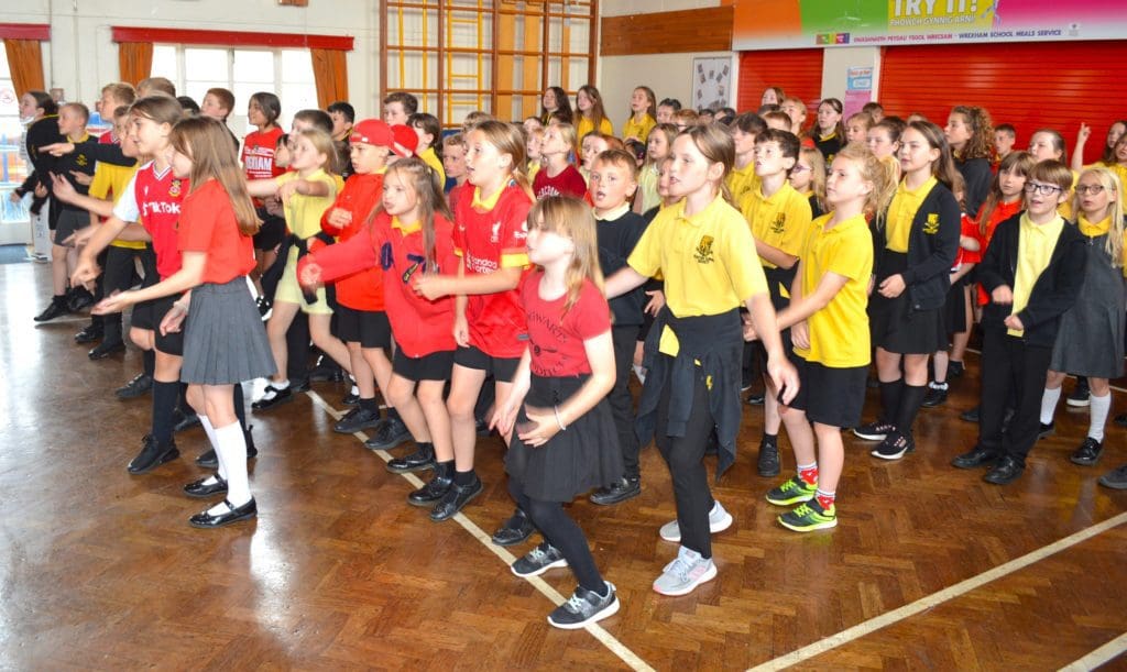Written by and starring children from different years, the rap follows Wrexham AFC’s attempt to win the FA Trophy while paying homage to Hollywood owners Ryan Reynolds and Rob McElhenney, star striker Paul Mullin, and referencing teachers, landmarks, and their favourite things about the city.