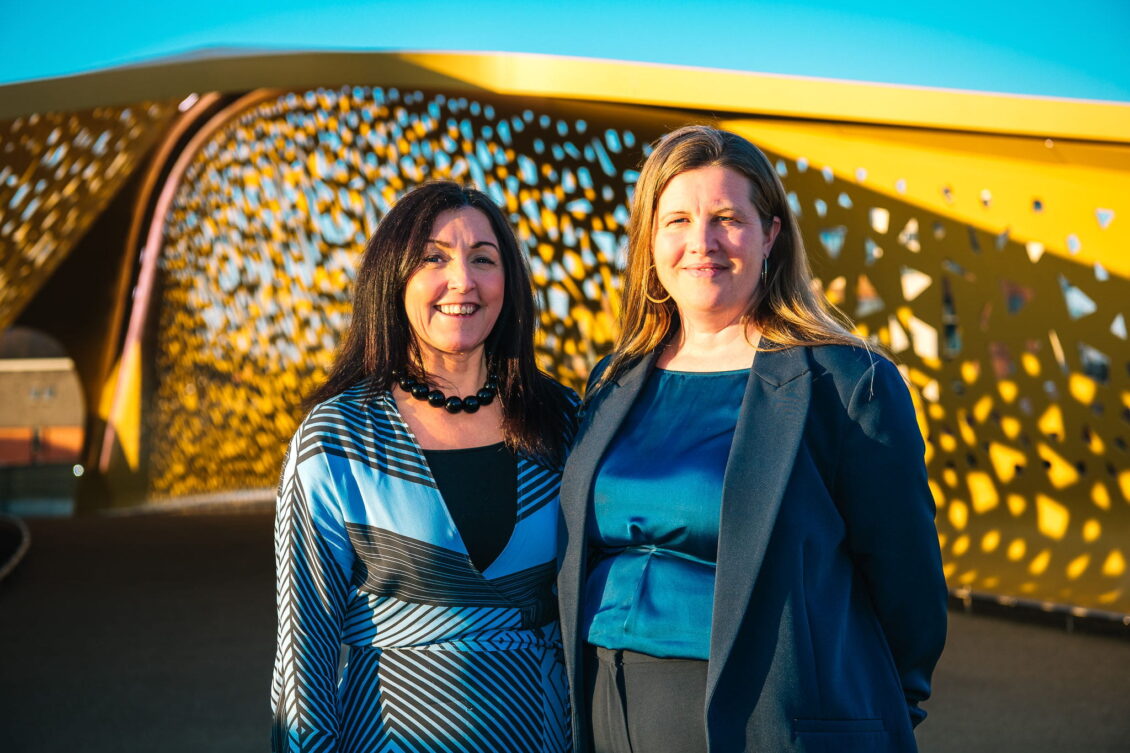 Dawn Lyle and Zoe Antrobus outside Swansea Arena (photo by Innovation photography)