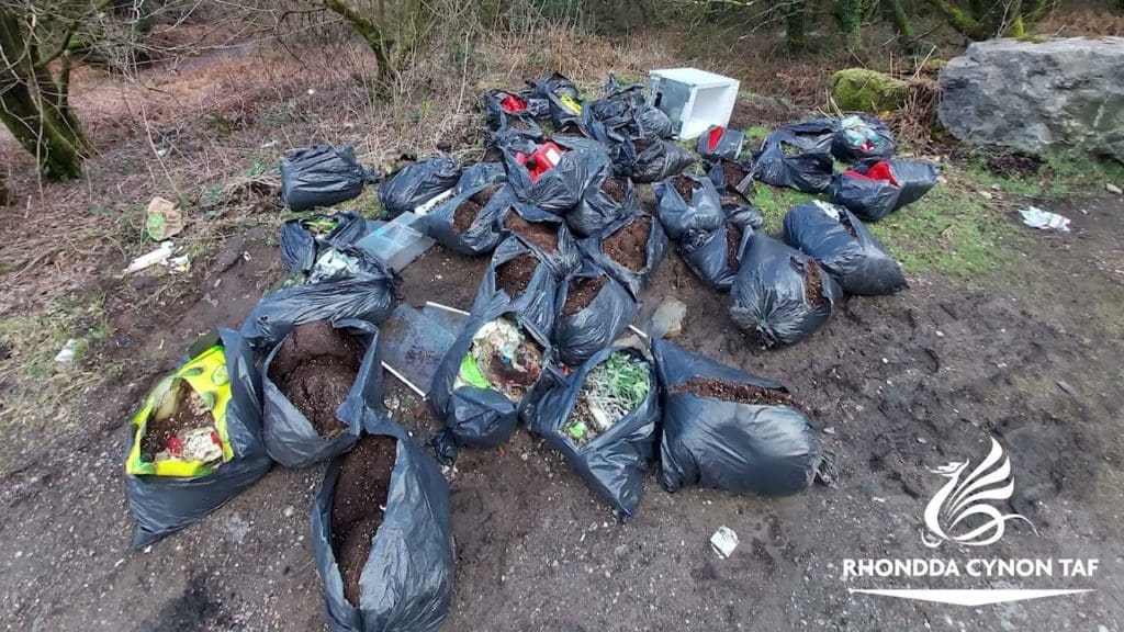 The serial offender dumped almost 200 black bags of waste across 3 locations, namely, Engine House Road, Llanwonno, Penrhys Forestry, and Pen-y-Wal Road, Llanwonno. The waste consisted of large amounts of cannabis waste and related materials, including venting pipes, heat lamps, soil and other items.