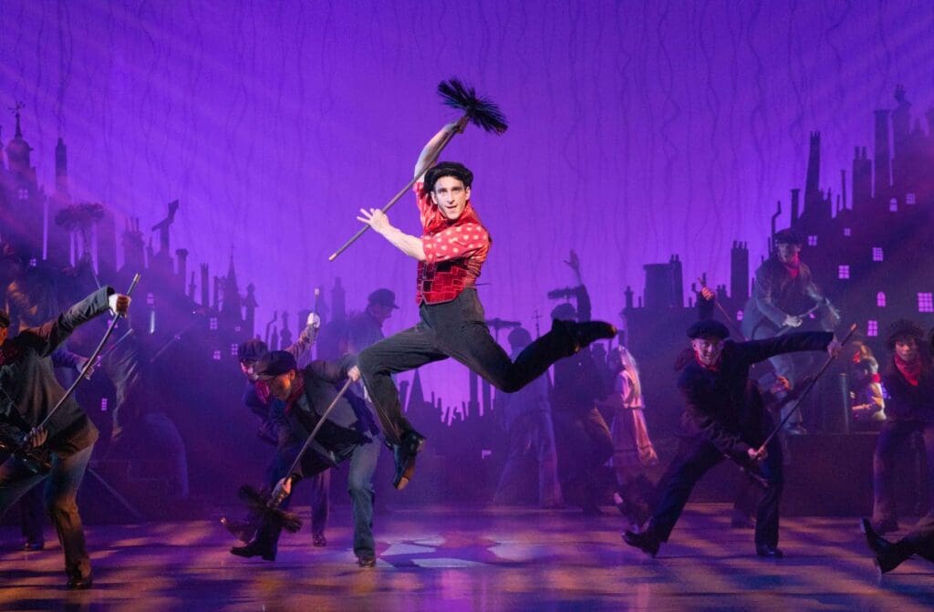 Then comes “Step in Time,” which is easily one of the highlights of the show. At first, the chimney sweeps appeared to be part of a digital backdrop, until they began stepping out of the shadows and into formation. What followed was an electrifying tap routine that raised the energy of the entire theatre. The moment Bert walked up the side of the proscenium and onto the ceiling drew a wave of gasps and applause. It is a feat of skill, precision and sheer theatrical magic. We just hope we’ve not spoil it by mentioning it!