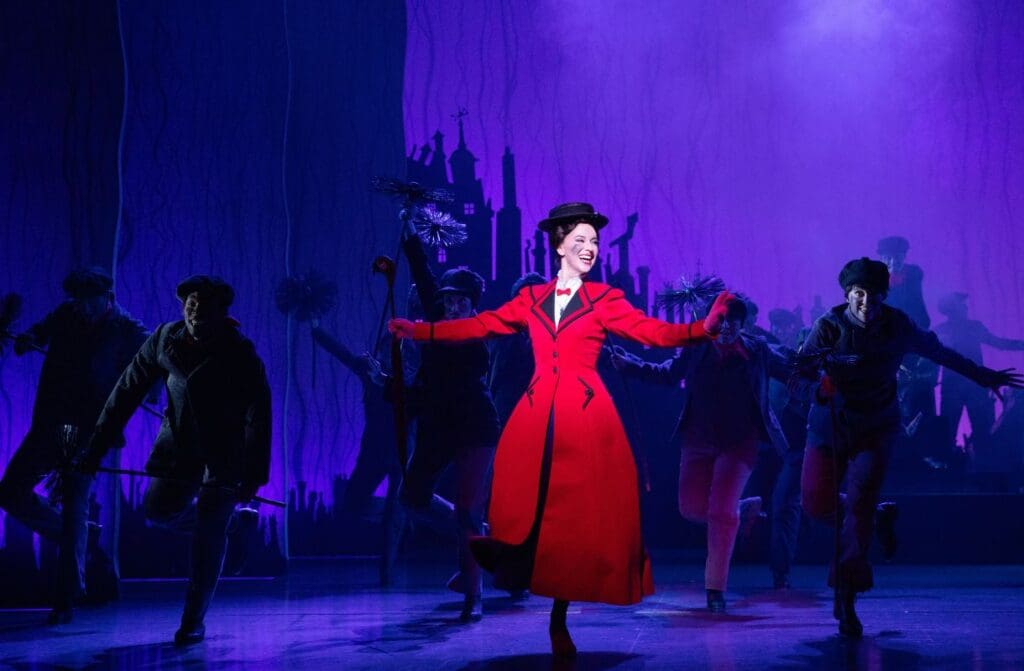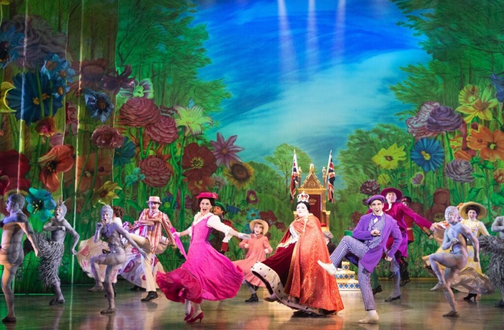 Colour plays a major part in the visual storytelling. Everyday scenes begin in muted Edwardian tones, before bursting into bold, vibrant hues as Mary leads the children into magical adventures. The costume changes mirror this pattern, shifting from drab to dazzling with each musical number. There’s always something new to look at, and it keeps the whole performance lively and immersive.