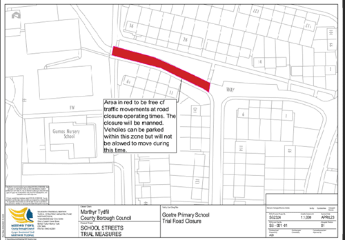 A school street in Merthyr Tydfil will be temporarily closed to traffic next week as part of a trial for plans to improve road safety in the areas.