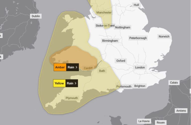 Heavy rain is expected to sweep across south Wales, with the heaviest falls over high ground such as Bannau Brycheiniog. Widespread totals of 20 to 40 mm are expected, rising to 60 to 80 mm over south and southwest facing slopes. A few locations could see as much as 100 to 120 mm. The volume and intensity of the rain also raises the risk of landslides on natural slopes and transport routes.