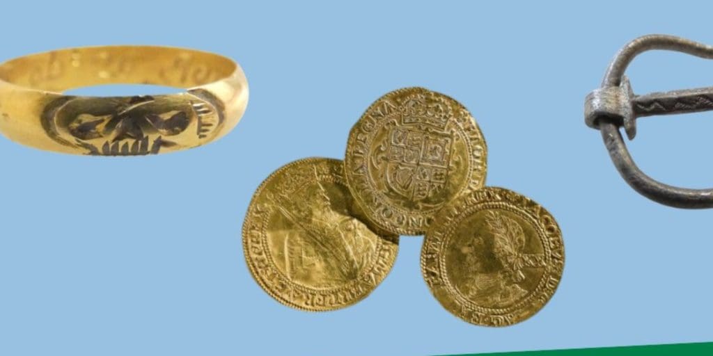- Three gold coins, discovered in Trefeglwys. Dating back to James I and Charles I.