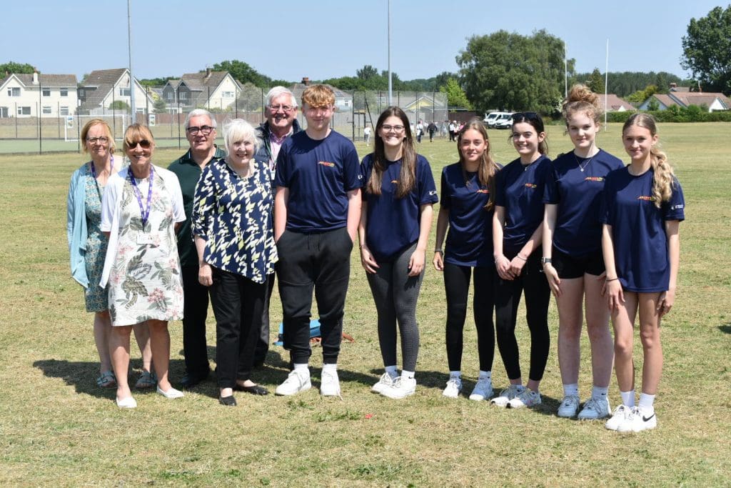 Council Leader Mary Ann Brocklesby with Cllr Angela Sandles, Cllr Jackie Strong, Cllr Peter Strong, Cllr John Crook, with pupils at a PlayMaker event