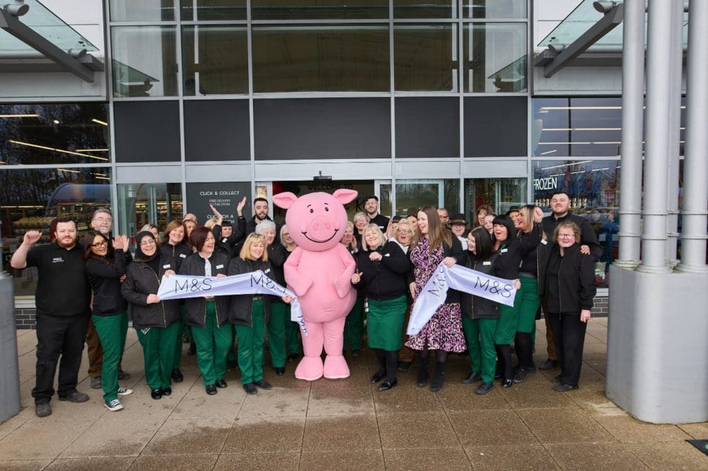M&S Pontarddulais has unveiled a brand-new look for customers. The Foodhall’s fresh new look is part of a significant investment in South Wales, with Store Manager Darcie Price and long serving colleague Allison Hart, who is celebrating 42 years of service, declaring the Foodhall officially ‘reopen’ this week, cutting the ribbon alongside Percy Pig.
