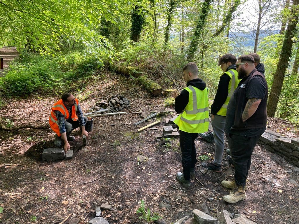 In advance of the placement, Archaeology Wales undertook an assessment of the site, and Thom Alun Kinghorn-Evans from the Society for the Protection of Ancient Buildings (SPAB) has been engaged to work on the restoration of the park’s historic buildings. Throughout the students’ placement, he has provided expert guidance on the use of traditional materials and methods, including the application of lime mortar. The students have also been accompanied and supervised by Ieuan Humphreys, Neath College’s Bricklaying Instructor and former Cyfle Building Skills apprentice, along with Jamie Piper, Centre Manager of Maesteg Construction Centre of Excellence.