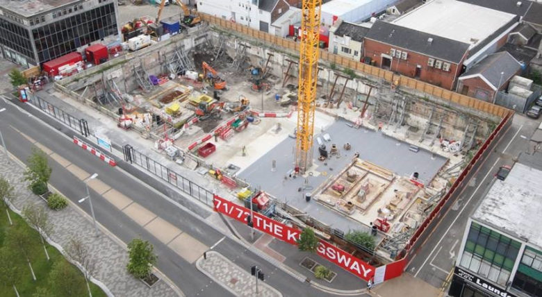 These photos show recent progress on foundation works for the 71/72 Kingsway scheme that’s located at the former Oceana nightclub site in the city centre.